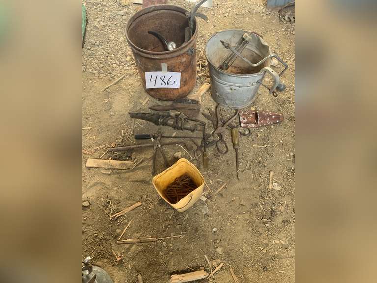 LOT 486 - Metal and galvanized, buckets, screwdrivers, assorted hand tools